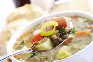 老桑枝60g,雌鸡1只约500g,加水适量煲汤,用食盐调味。